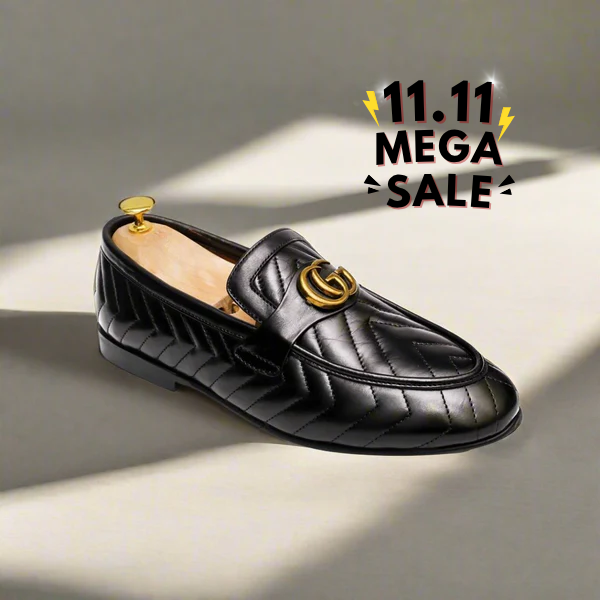 This black woven loafer pairs rich texture with a signature GG buckle for a sleek, luxury-ready finish.