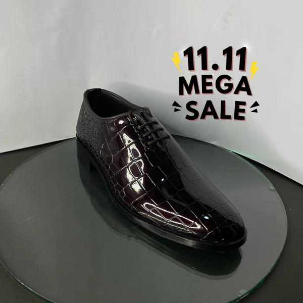 Croc texture and high-gloss maroon give this lace-up undeniable presence. Bold, polished, and unforgettable.