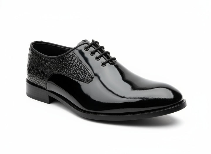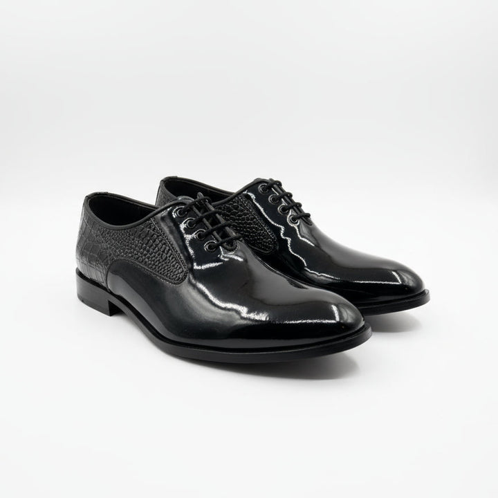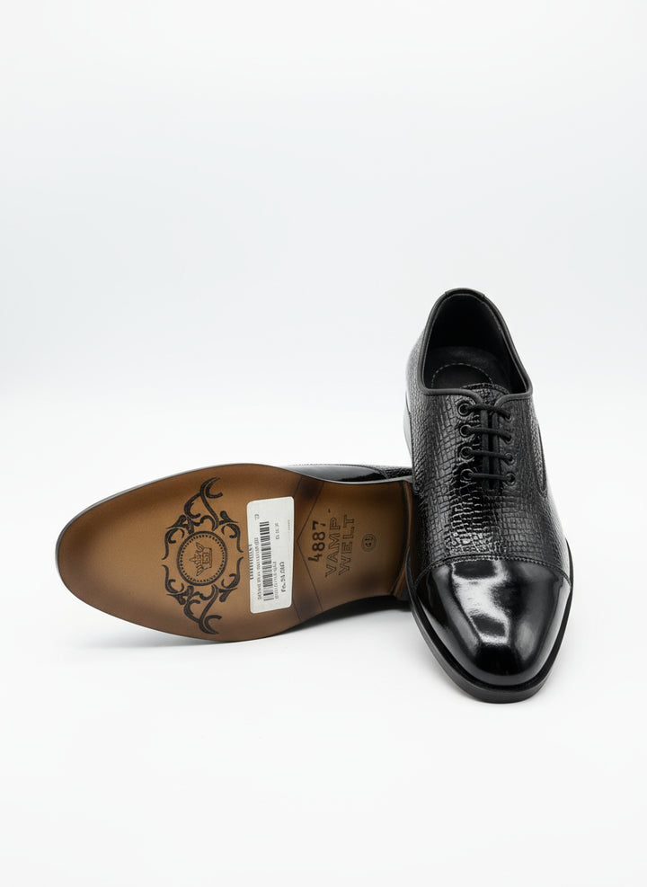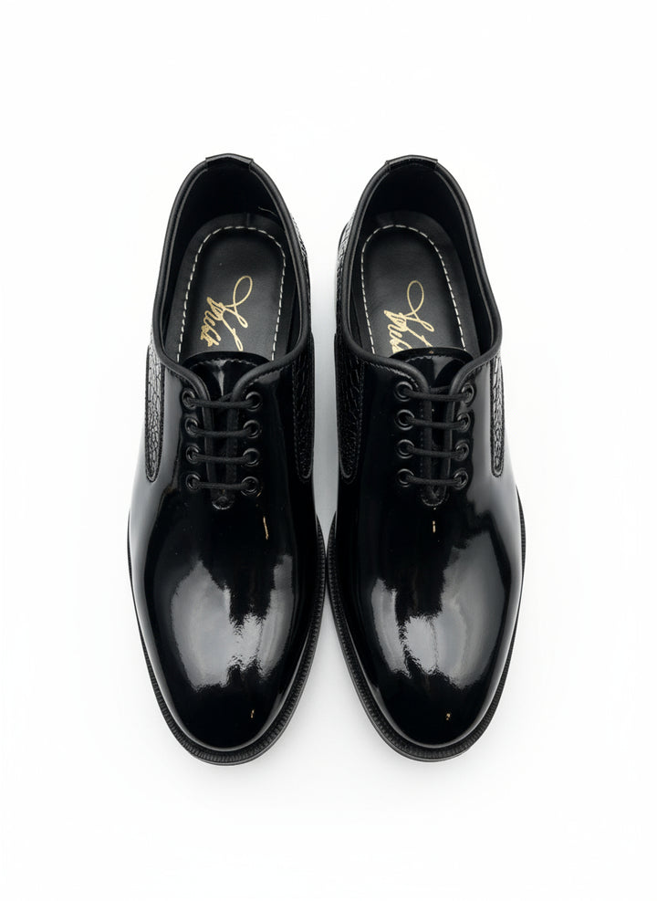 Patent Croc Wholecut Black – Dark Sophistication, Textured to Perfection