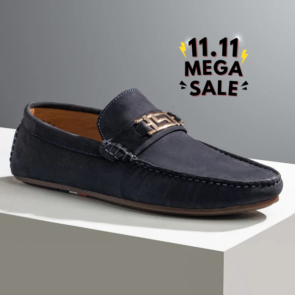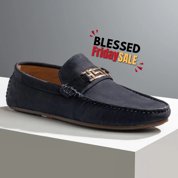 A navy-blue suede loafer that offers a soft, dreamy texture with a flexible Craib sole for elevated comfort.